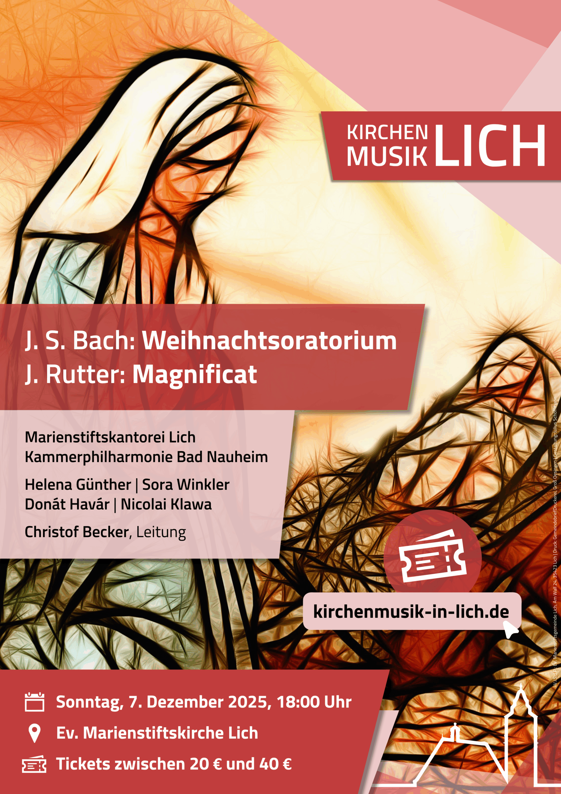 Eingebettet in die Kantaten I und III des Weihnachtsoratoriums von Johann Sebastian Bach erklingt zum diesjährigen Advents- und Weihnachtskonzert das Magnificat von John Rutter.